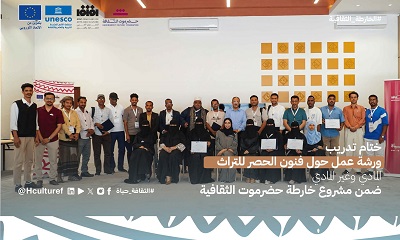اختتمت يوم الأربعاء 12 فبراير 2026، ورشة “فنون الحصر للتراث المادي وغير المادي ” في منطقة الفنون التابعة لمؤسسة حضرموت للثقافة، وذلك ضمن مشروع خارطة حضرموت الثقافية.